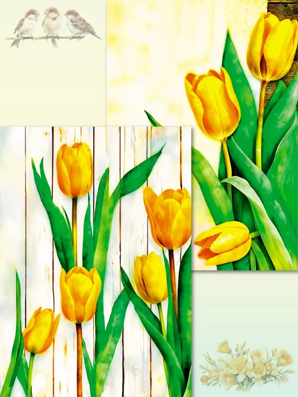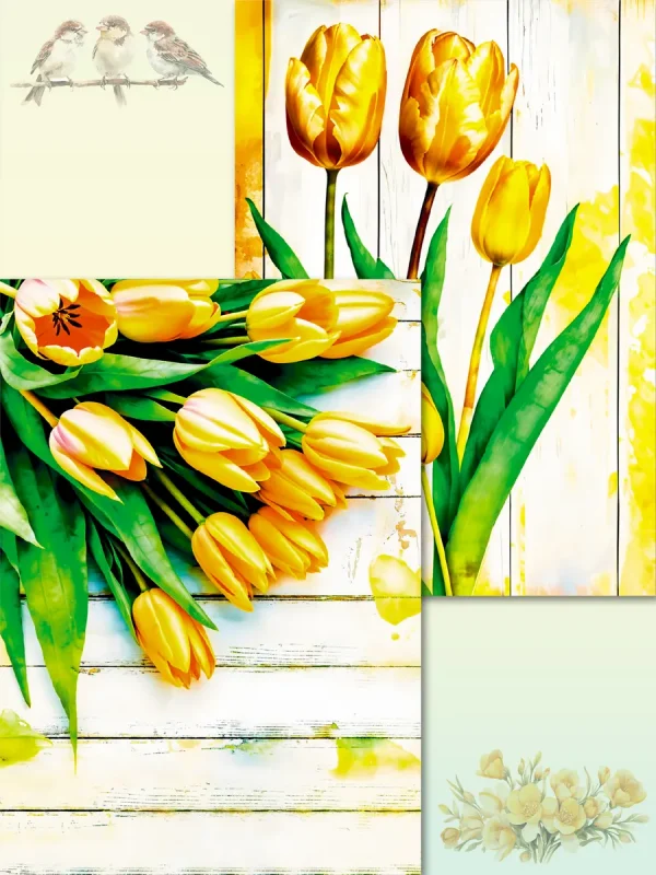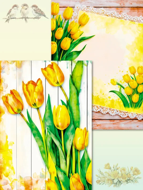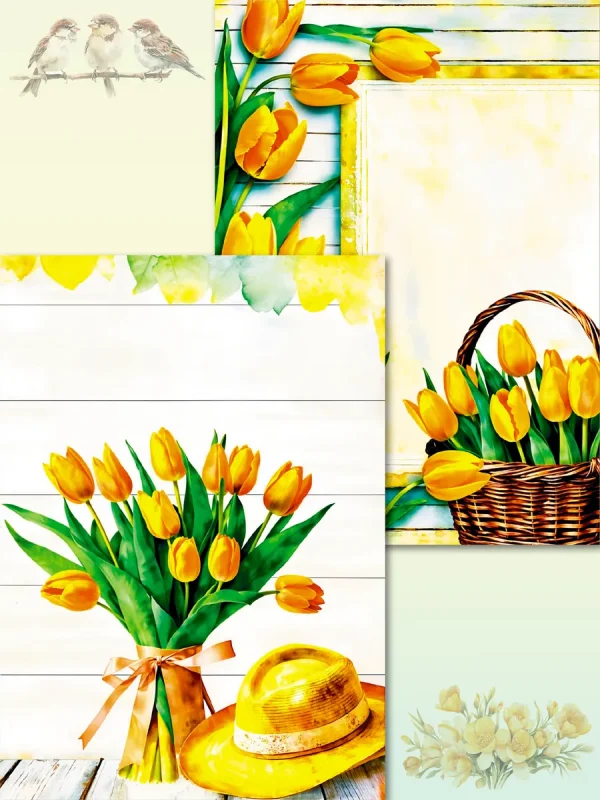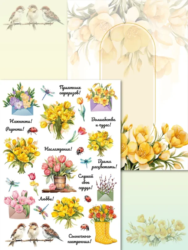 - Двусторонний дизайн — изящные весенние мотивы на обеих сторонах листа