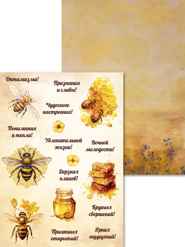 Уникальная коллекция бумаги для скрапбукинга воплощает в себе природную гармонию и уют пчелиного улья. Двухсторонний дизайн формата А4 идеально подходит для создания тёплых и душевных композиций.