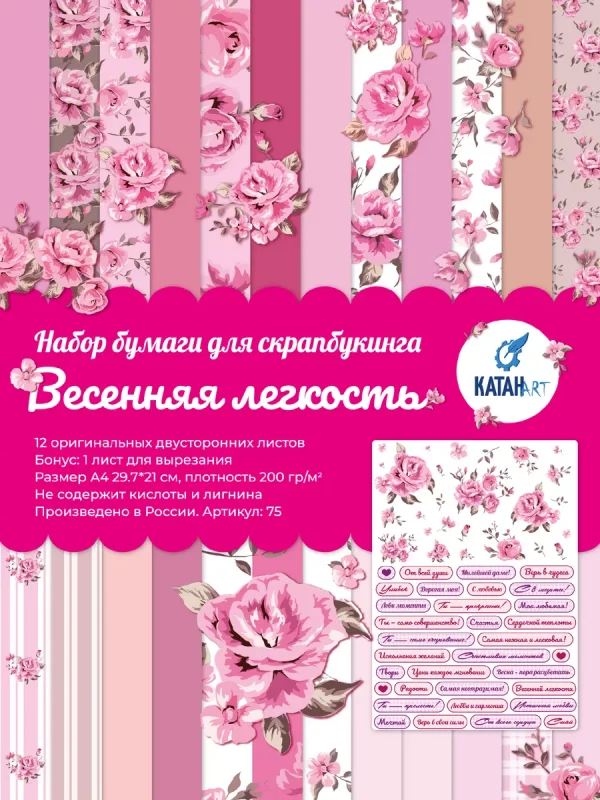 Двусторонняя бумага формата А4 из коллекции «Весенняя легкость» — идеальный выбор для создания уникальных скрапбукинг-проектов. Материал отличается высоким качеством исполнения и универсальностью применения.
