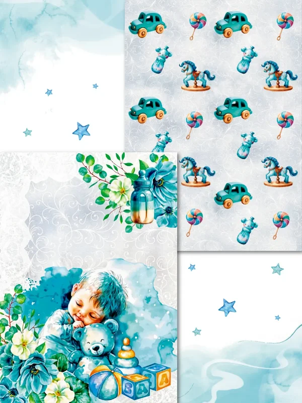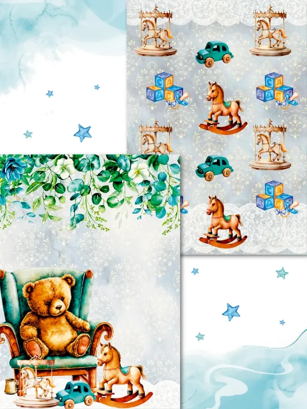 Волшебная коллекция специально создана для запечатления первых шагов, улыбок и достижений вашего малыша. Нежная двухсторонняя бумага станет идеальным выбором для создания трогательных альбомов и открыток.