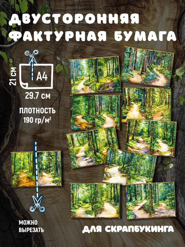Двусторонняя печать с уникальным лесным дизайном позволяет создавать многослойные композиции и использовать обе стороны листа для достижения максимального эффекта.