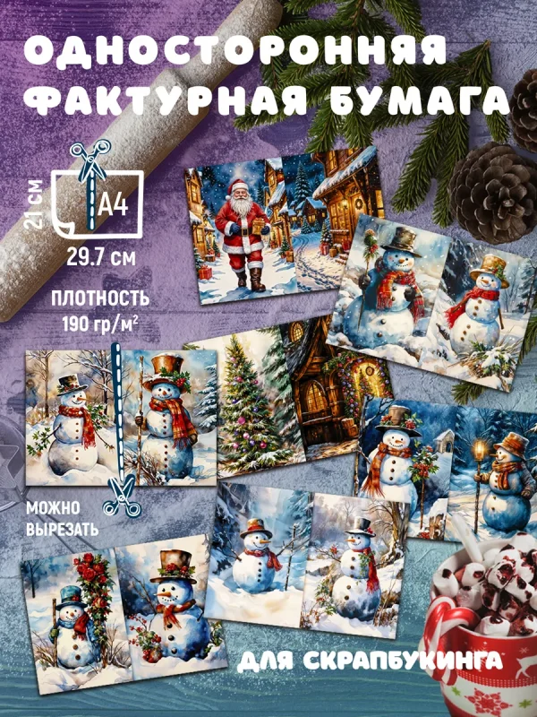 Окунитесь в атмосферу зимнего уюта с нашей авторской бумагой для скрапбукинга. Односторонний дизайн с живописными зимними мотивами станет идеальным фоном для создания тёплых и душевных композиций.