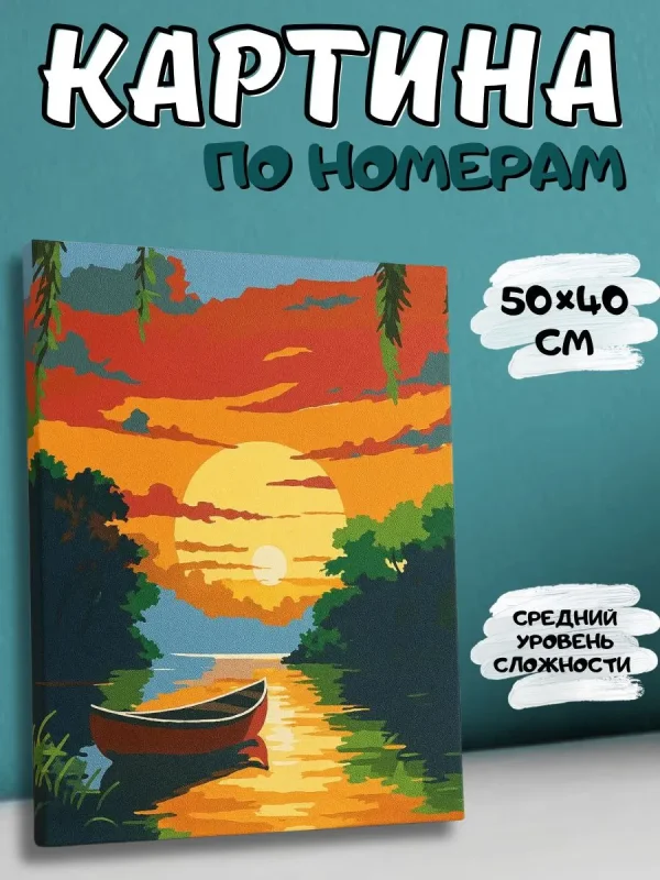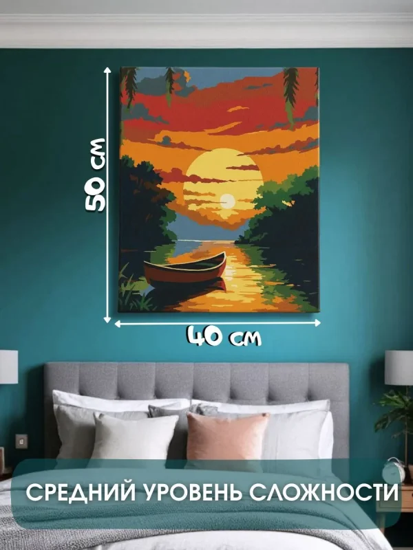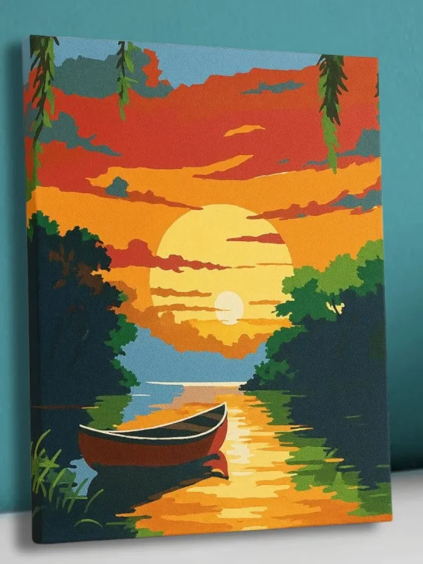 Картина по номерам на холсте с подрамником “Лодка на закате”