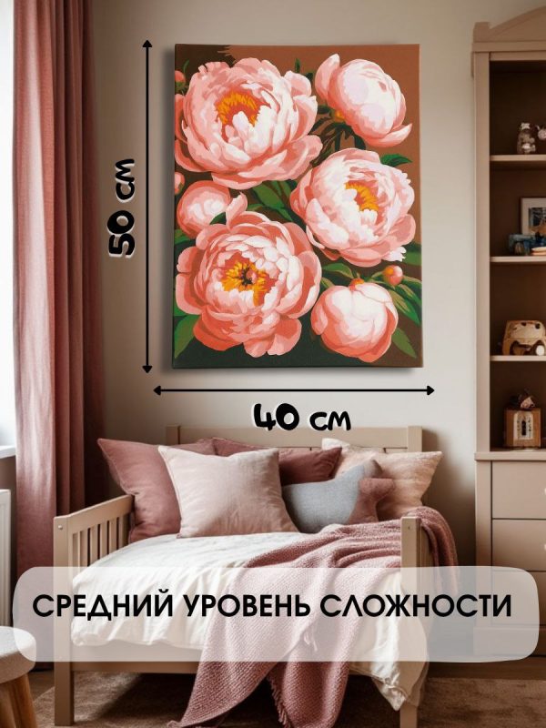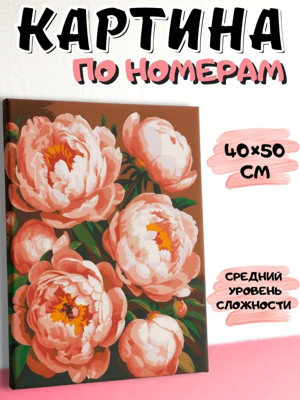 Картина по номерам на холсте с подрамником “Розовые пионы”