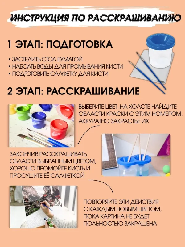 Картина по номерам — это уникальный набор для творчества, позволяющий создать настоящее произведение искусства даже тем, кто никогда не держал кисть в руках. Основа разделена на пронумерованные участки, каждый из которых нужно закрасить краской соответствующего номера.