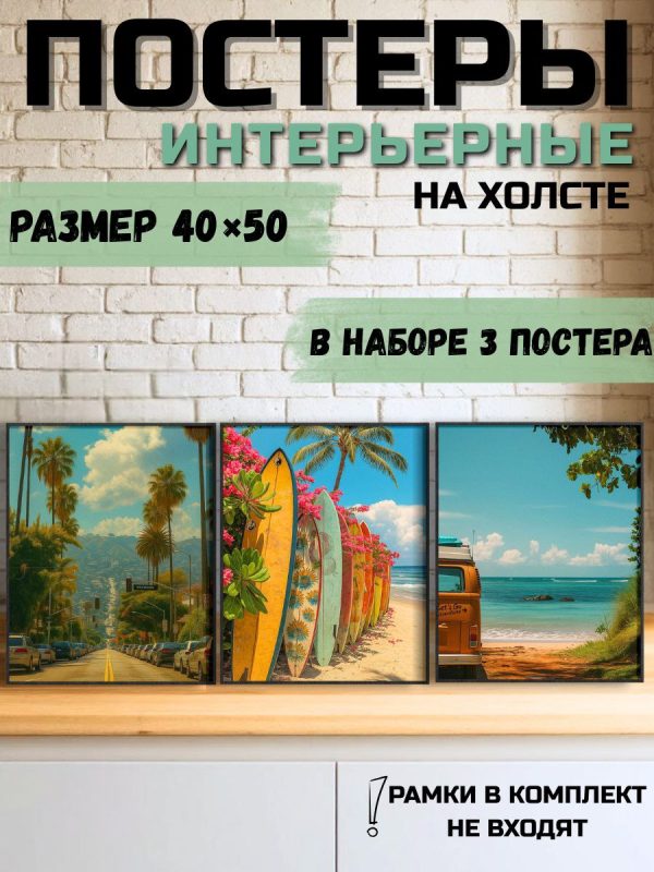 Набор из трех интерьерных постеров на холсте от Катан-Art станет прекрасным дополнением к любому пространству.